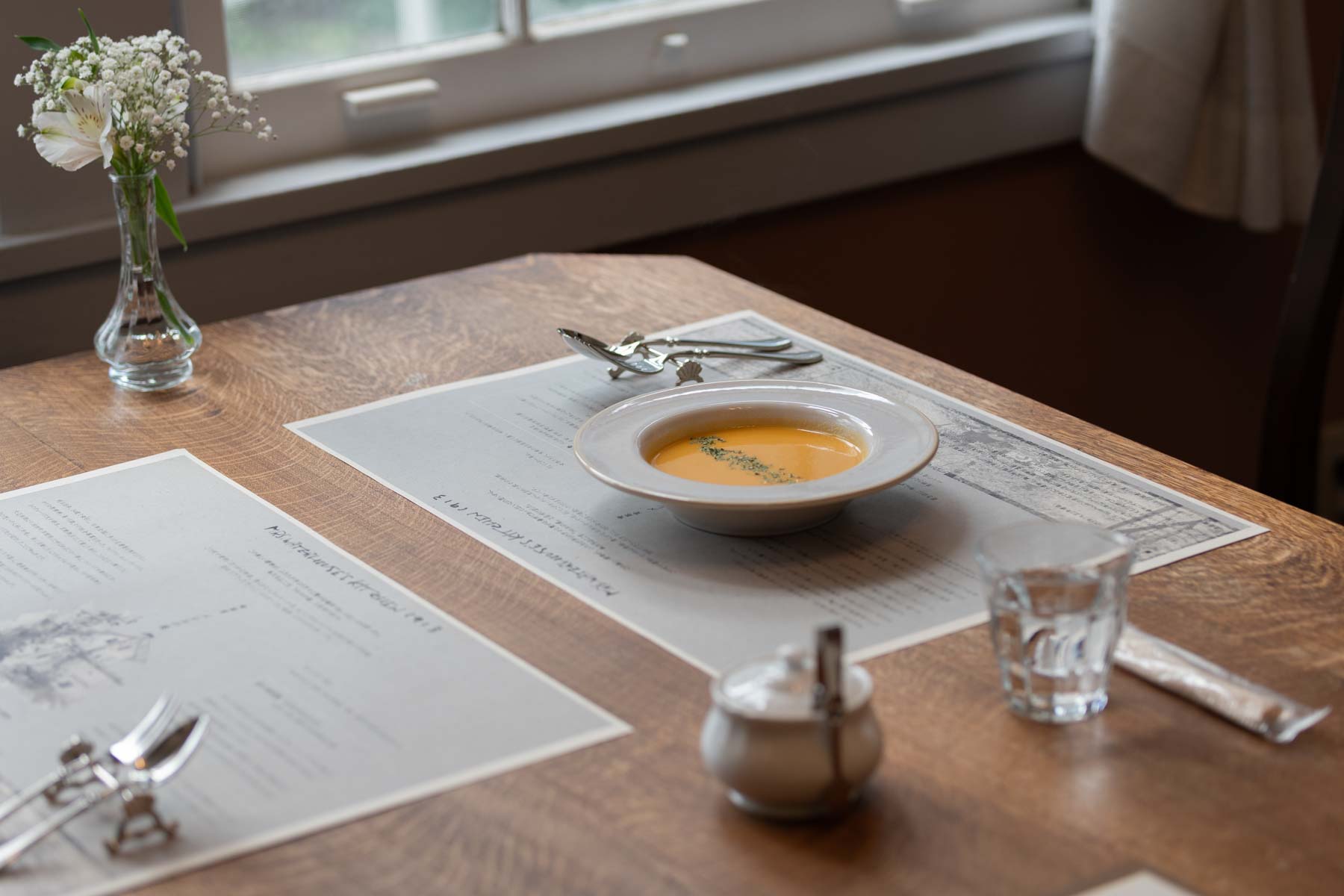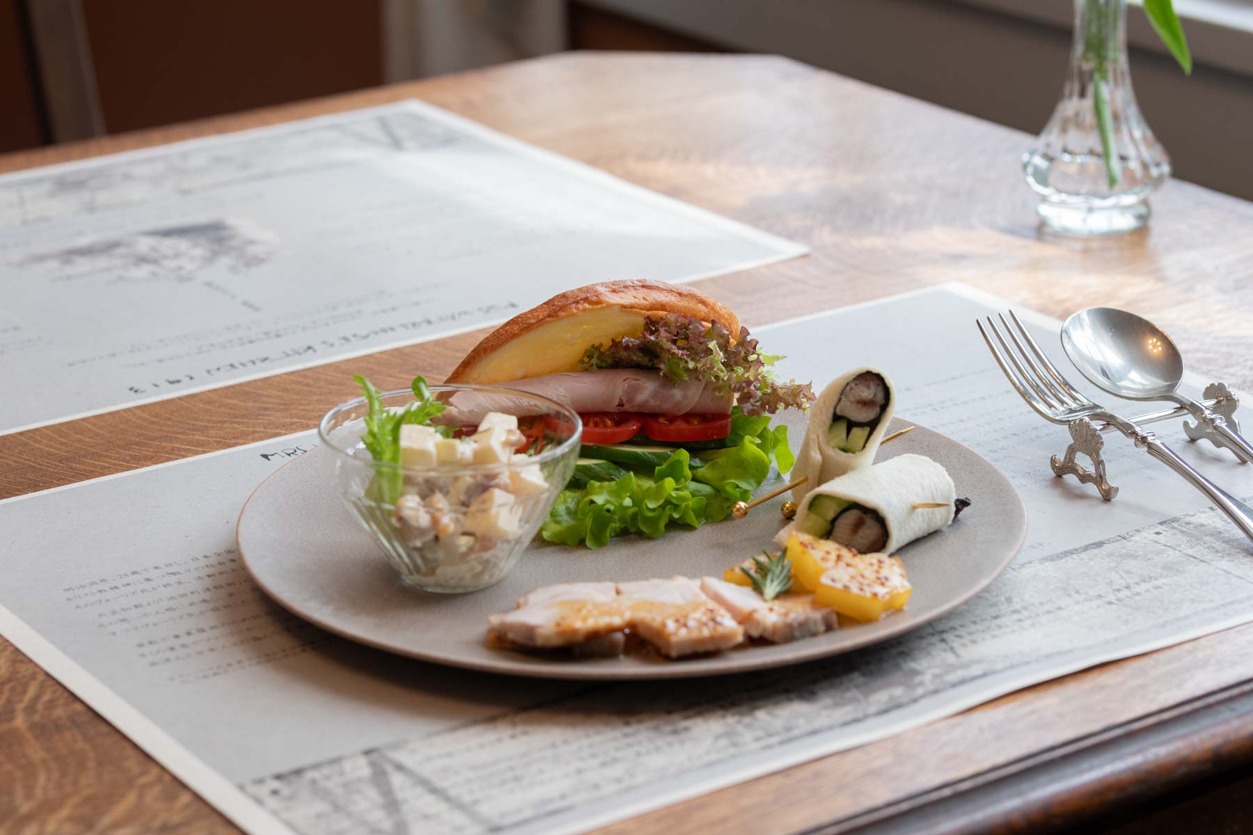 ウォーターハウス記念館内「喫茶室 メレルの庭」では、当時の西洋料理のレシピを元に再現した料理を、ウォーターハウス記念館のダイニングルームでお楽しみいただけます。